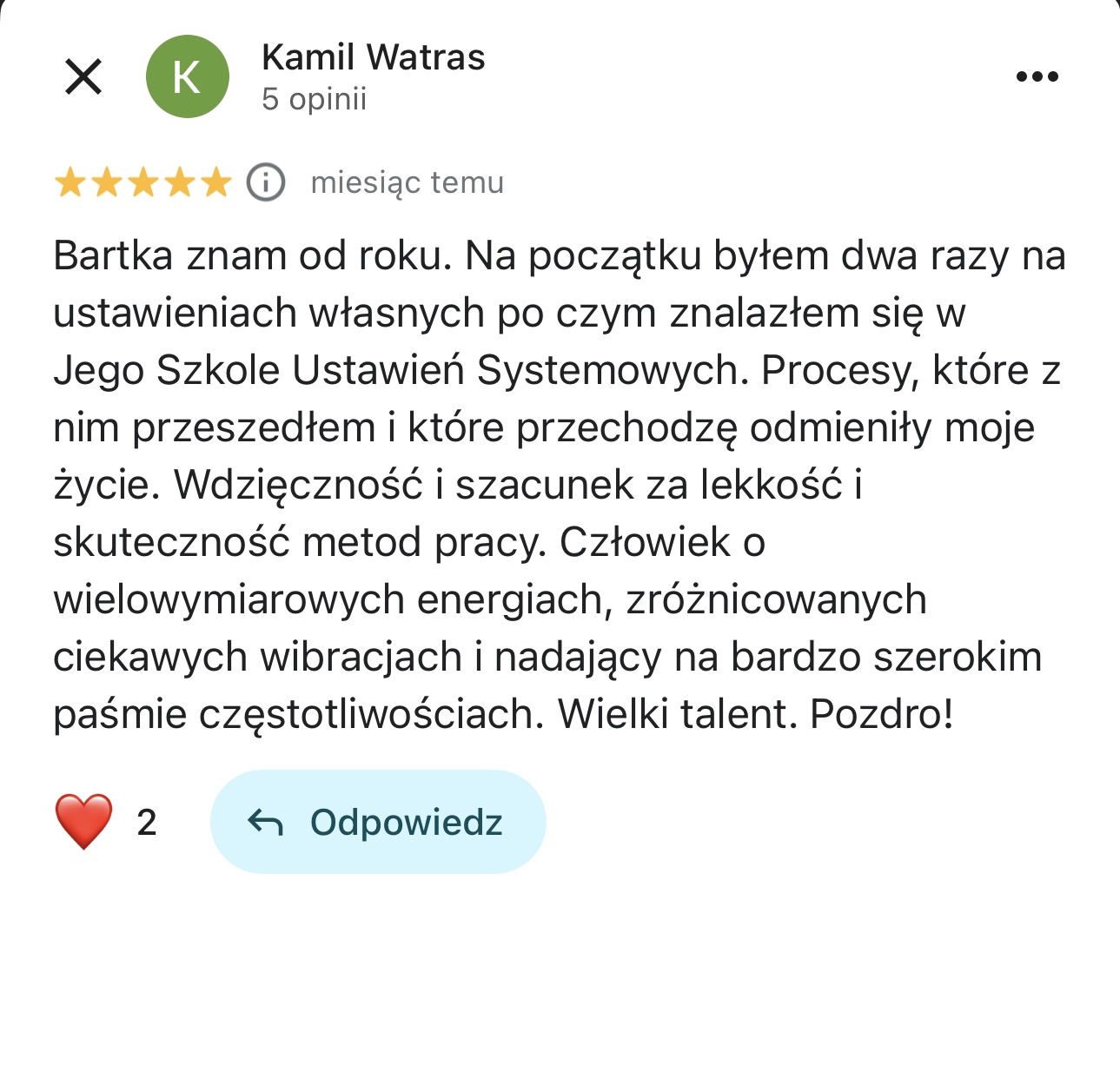 - Ułożenie relacji partnerskiej. Niezależnie od tego, czy jesteś w związku, po rozstaniu, czy w bólu – pracujemy nad porządkiem, obecnością i uzdrowieniem dynamik.