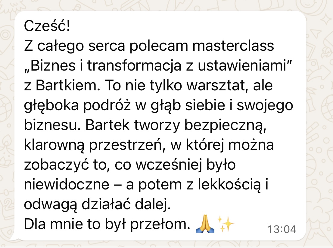 Jeśli czujesz, że od lat tkwisz w tych samych schematach, emocjach i relacjach, ten program jest przestrzenią, w której odzyskasz lekkość, spokój i kierunek. Przez 3 miesiące pracujemy głęboko, systemowo i skutecznie – tak, abyś naprawdę poczuł zmianę w ciele, emocjach i codziennym życiu.