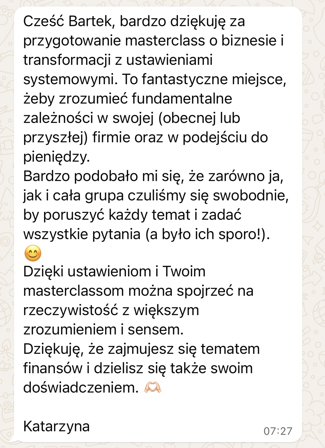 - Zdjęcie blokad finansowych i biznesowych. Ustawisz przepływ, zdejmiesz lojalności i ukryte blokady, które zatrzymywały pieniądze i rozwój.